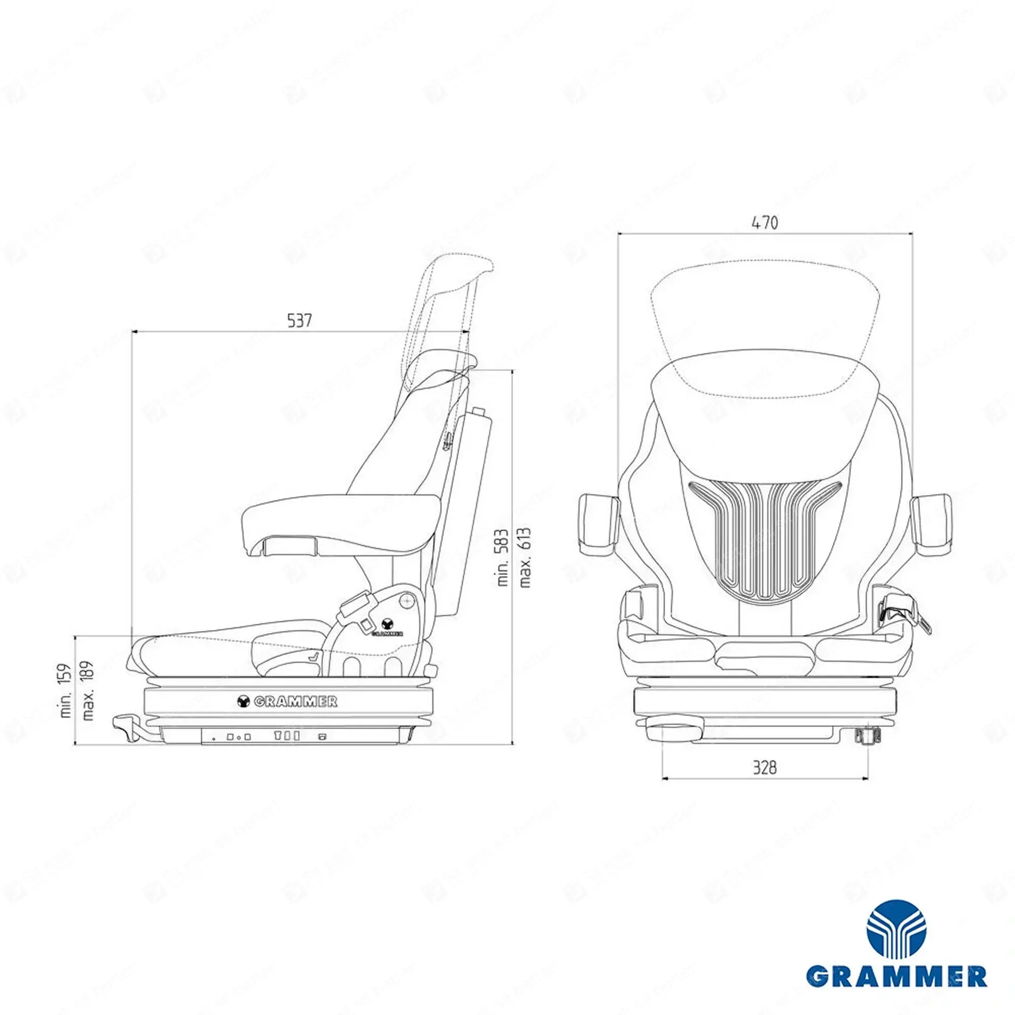 De Grammer stoel Primo XL (Fabrikantennummer 1293489) heeft een laag luchtgeveerd onderstel en is geschikt voor heftrucks en bouwmachines. De stoel heeft een verstelbare lendensteun en ergonomische kussens voor perfect zitcomfort.