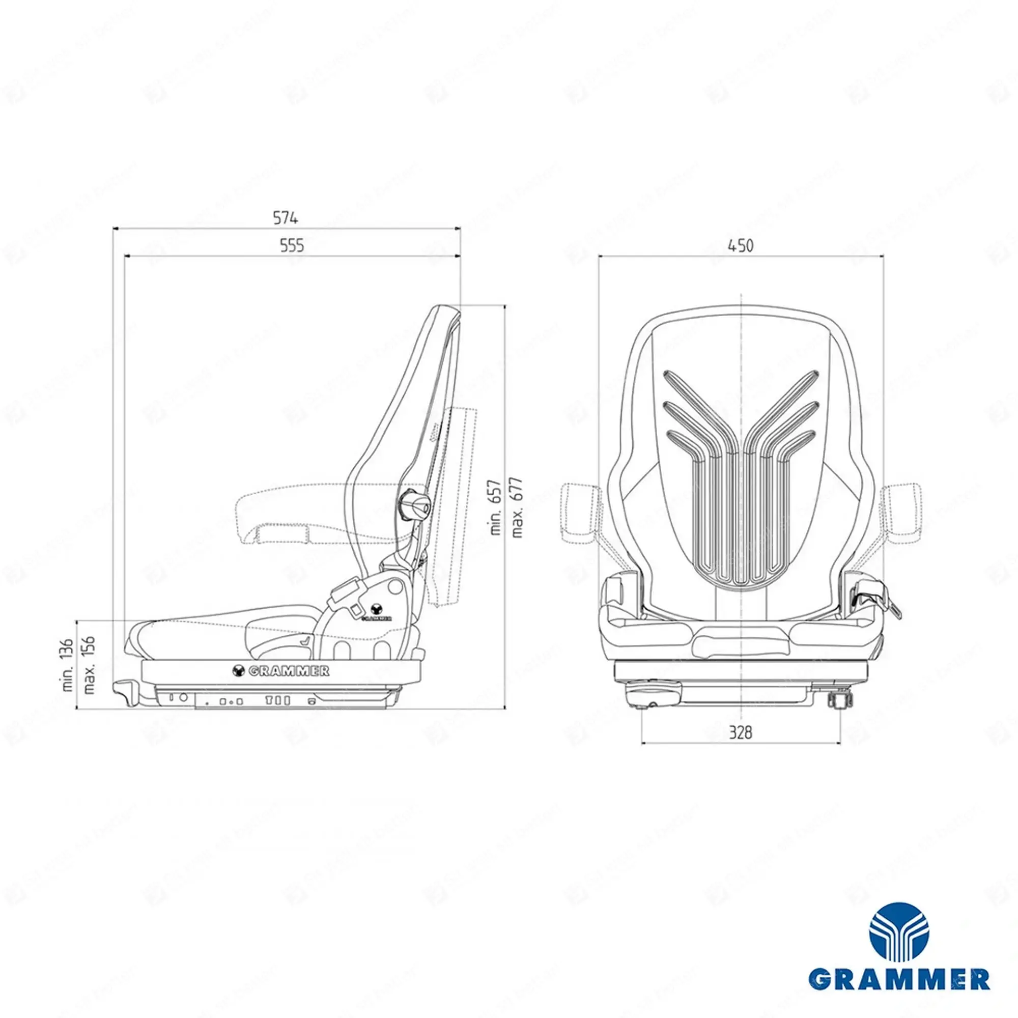 Deze Grammer Primo XXM stoel is voorzien van een laag veersysteem en is optioneel leverbaar met: