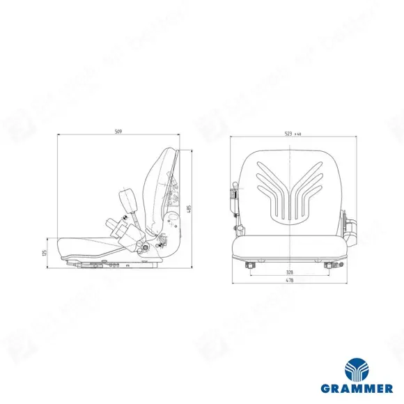 De Grammer stoel B12 pvc (Fabrikantennummer 1127770) is een compacte heftruckstoel geschikt voor voertuigen waar de cabineruimte beperkt is.Deze mechanisch geveerde stoel is ook geschikt als trekkerstoel of tractorstoel voor kleine trekkers.