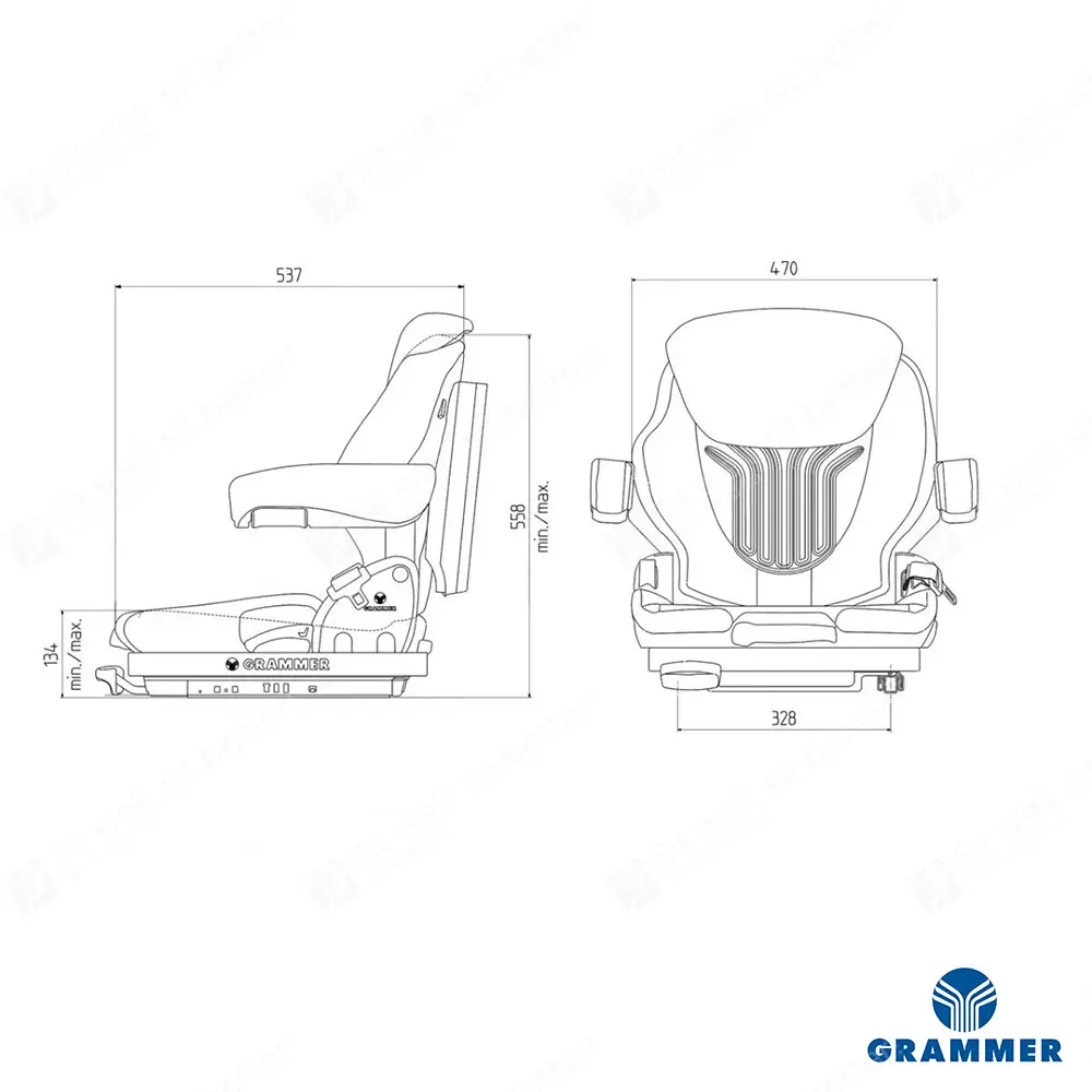 De Grammer Primo M is een mechanisch geveerde stoel met een MSG65 onderstel en type 521 zitting. Deze stoel is geschikt als bouwmachinestoel, graafmachinestoel, heftruckstoel en voor agrarisch kleine voertuigen.