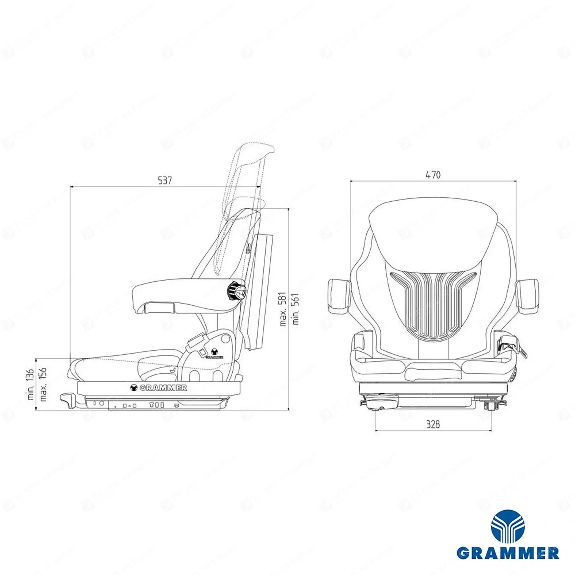 Het mechanisch geveerde onderstel van deze Grammer heftruckstoel/Grammer bouwmachinestoel is optioneel uit te breiden met een horizontaalvering voor extra zitcomfort. Indien gewenst kan de Grammer Primo XM geleverd worden met armleuningen, rugverlenging, draaiplaat en verwarming.