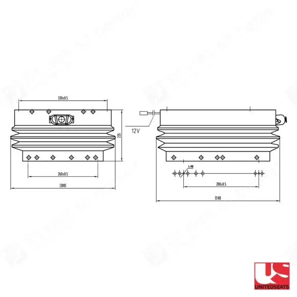 UnitedSeats LGV120 luchtgeveerd veersysteem 24V kan worden gecombineerd met diverse statische (ongeveerde) stoelen waaronder de: