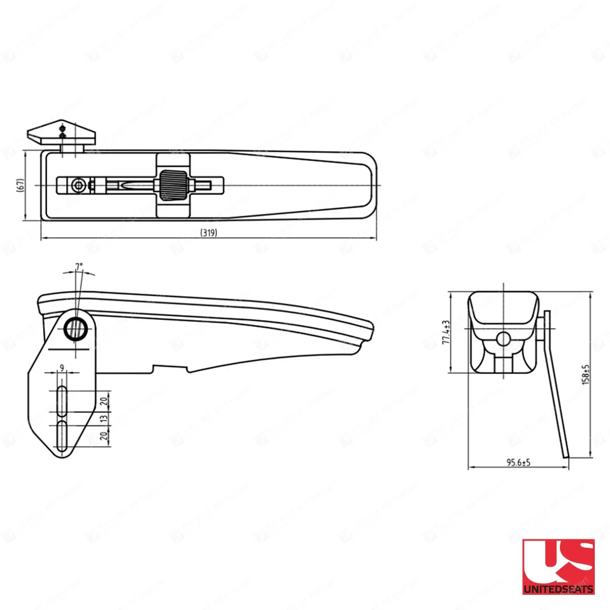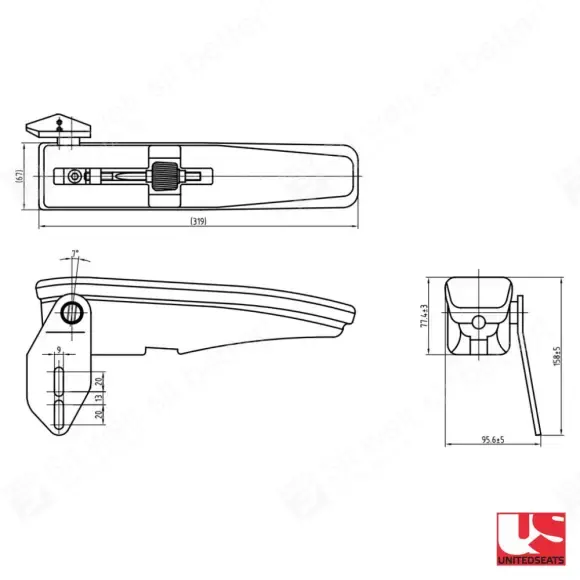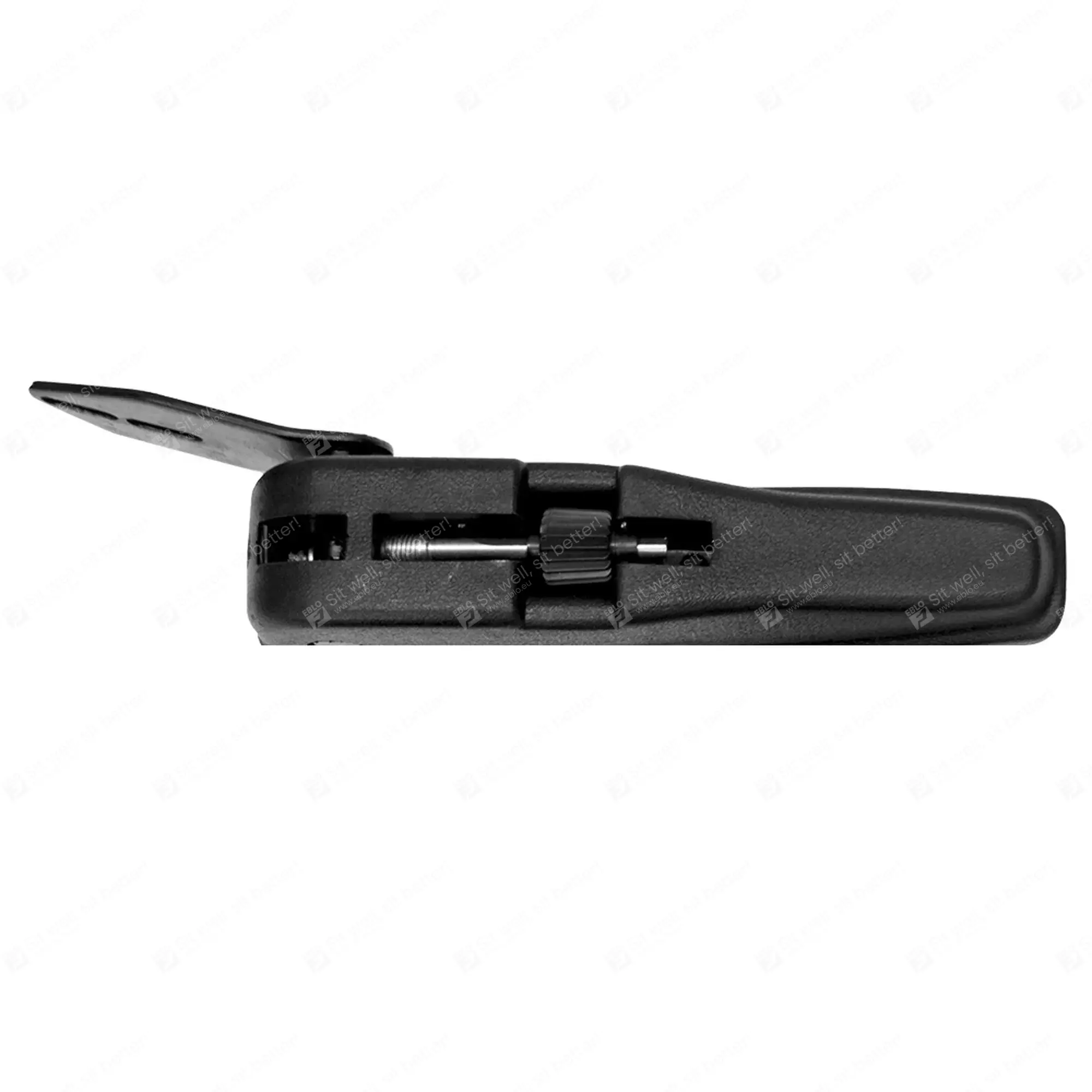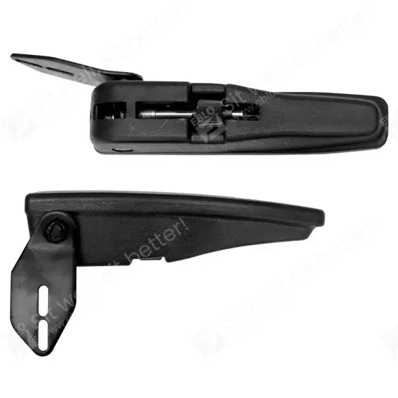 In hoogte en in hoek verstelbare armleuning links, voorzien van DS85 montageplaat. Deze armleuning is eenvoudig te monteren dankzij moeren aan de zijkant, onder de plastic afdekplaatjes. Rechter armleuning ook leverbaar.
