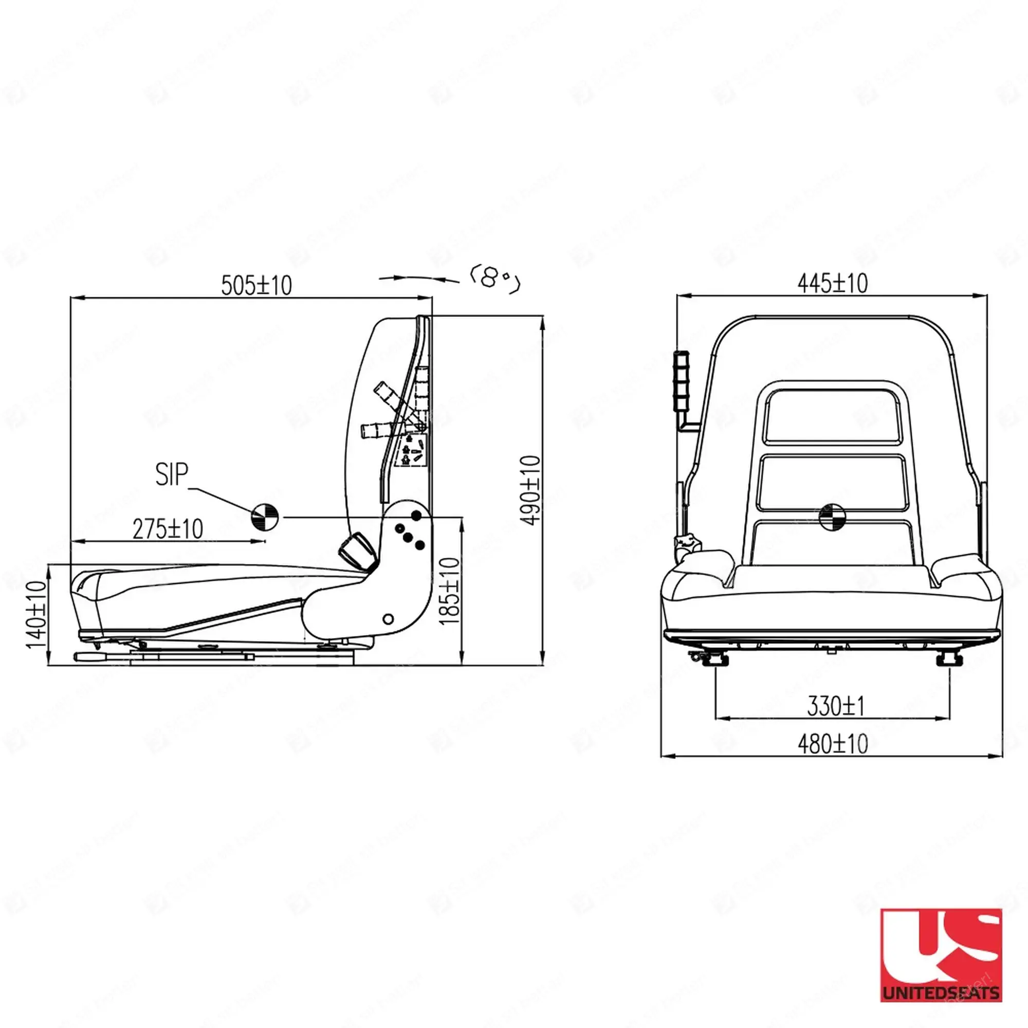 De UnitedSeats GS12 is een mechanisch geveerde stoel met duurzame, stevige pvc bekleding (heavy duty) geschikt voor onder meer heftruck, reachtruck en andere kleine logistieke voertuigen. Voorzien van onder meer handmatige gewichtsinstelling, rugverstelling en langsverstelling. Op aanvraag kan de stoel worden geleverd met armleuningen en bijvoorbeeld stoffen bekleding.
