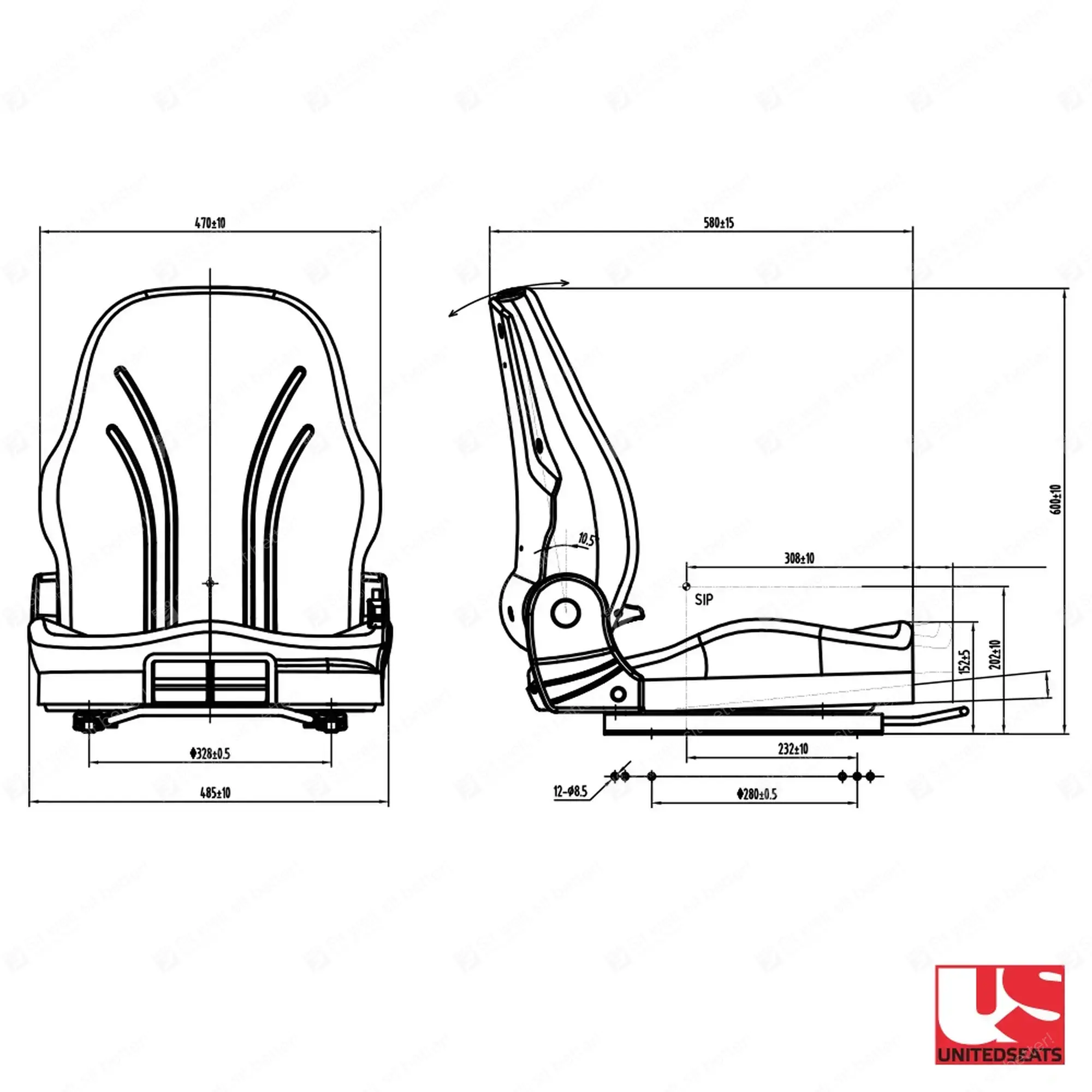 De UnitedSeats C2 Pro is geschikt als stuurstoel, bootstoel, stoel voor grote agrarische voertuigen, bouwmachinestoel en heftruckstoel, afhankelijk van hoe de stoel is samengesteld. Artikelnummer: US.101650.