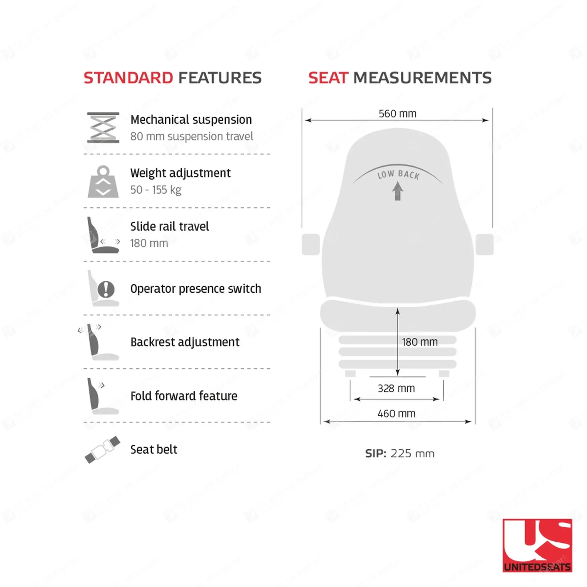De UnitedSeats MGV35 pvc is een comfortabele stoel geschikt voor vele types heftrucks en bouwmachines dat ondanks het compacte formaat zeer goed veert en bovendien voldoet aan de strengste vibratienormen (EN 13490 / IT1 & IT2).