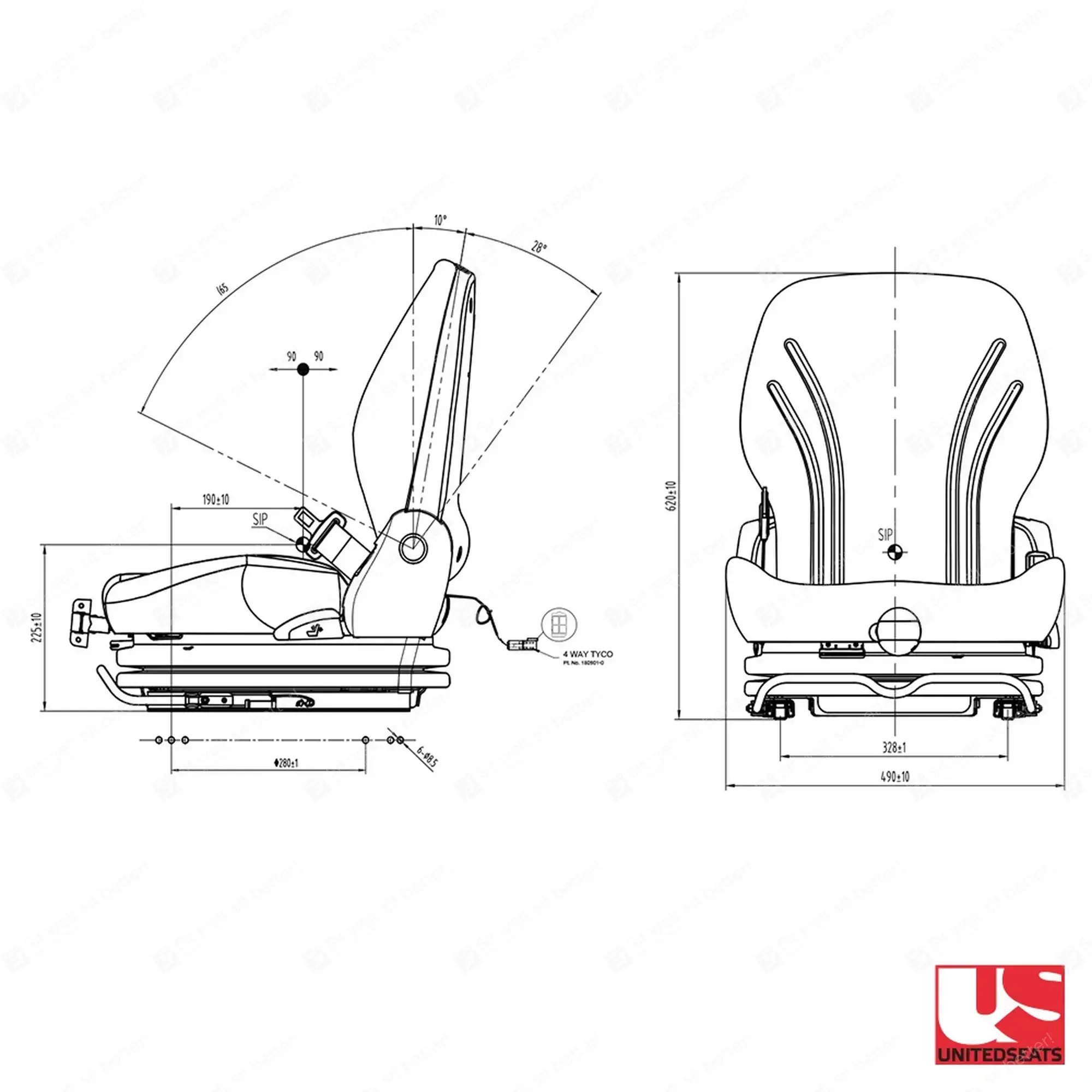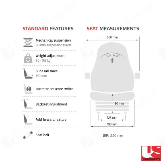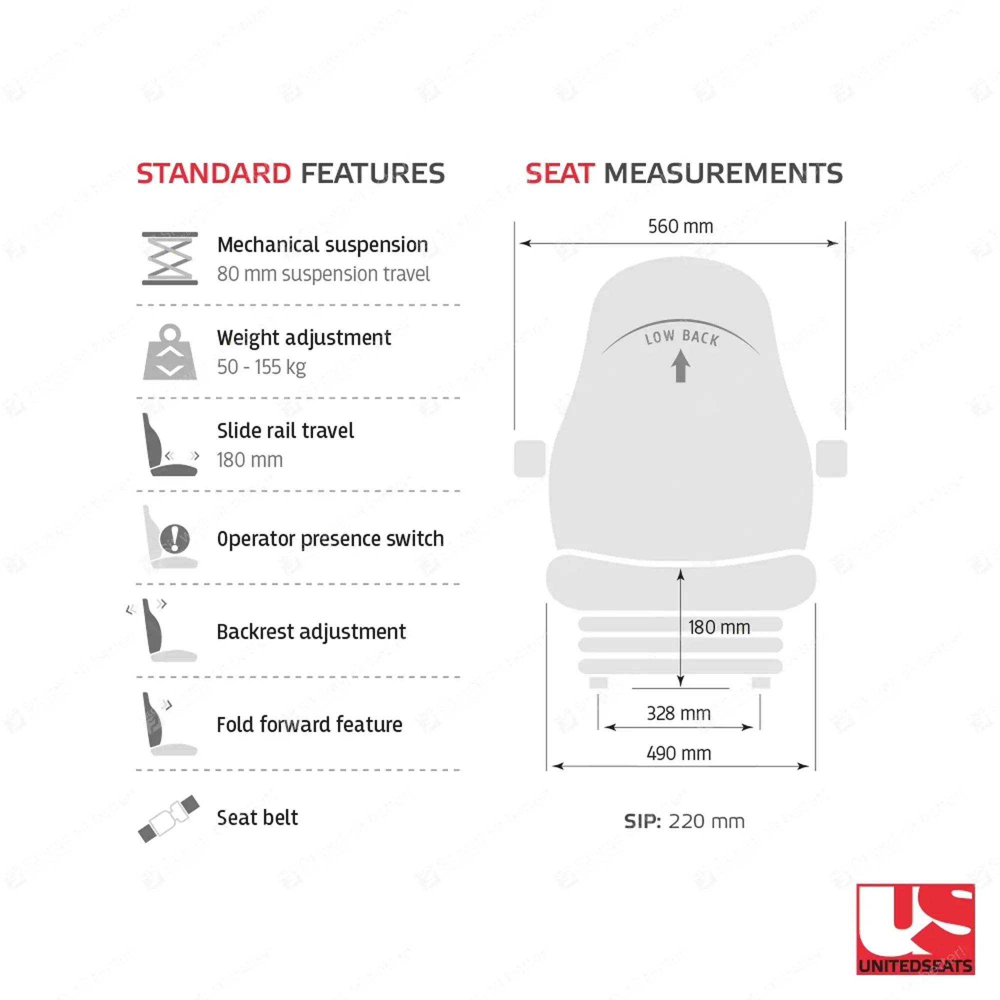 De UnitedSeats MGV35 Comfort is een comfortabele stoel voor onder meer heftruck en bouwmachines. Voorzien van ergonomisch zit- en rugkussen bekleed met duurzaam pvc.