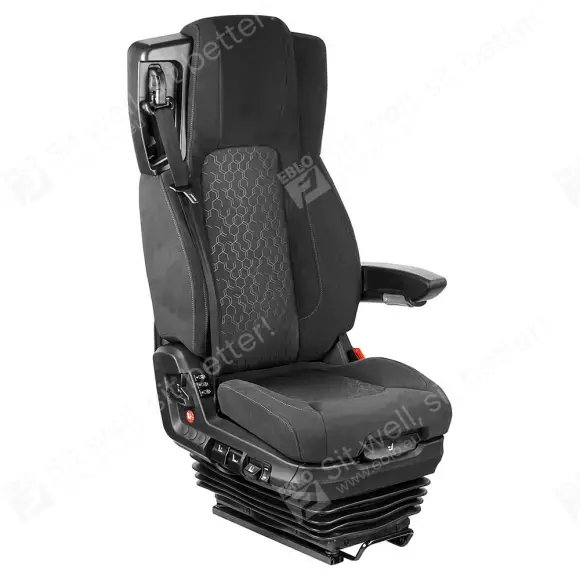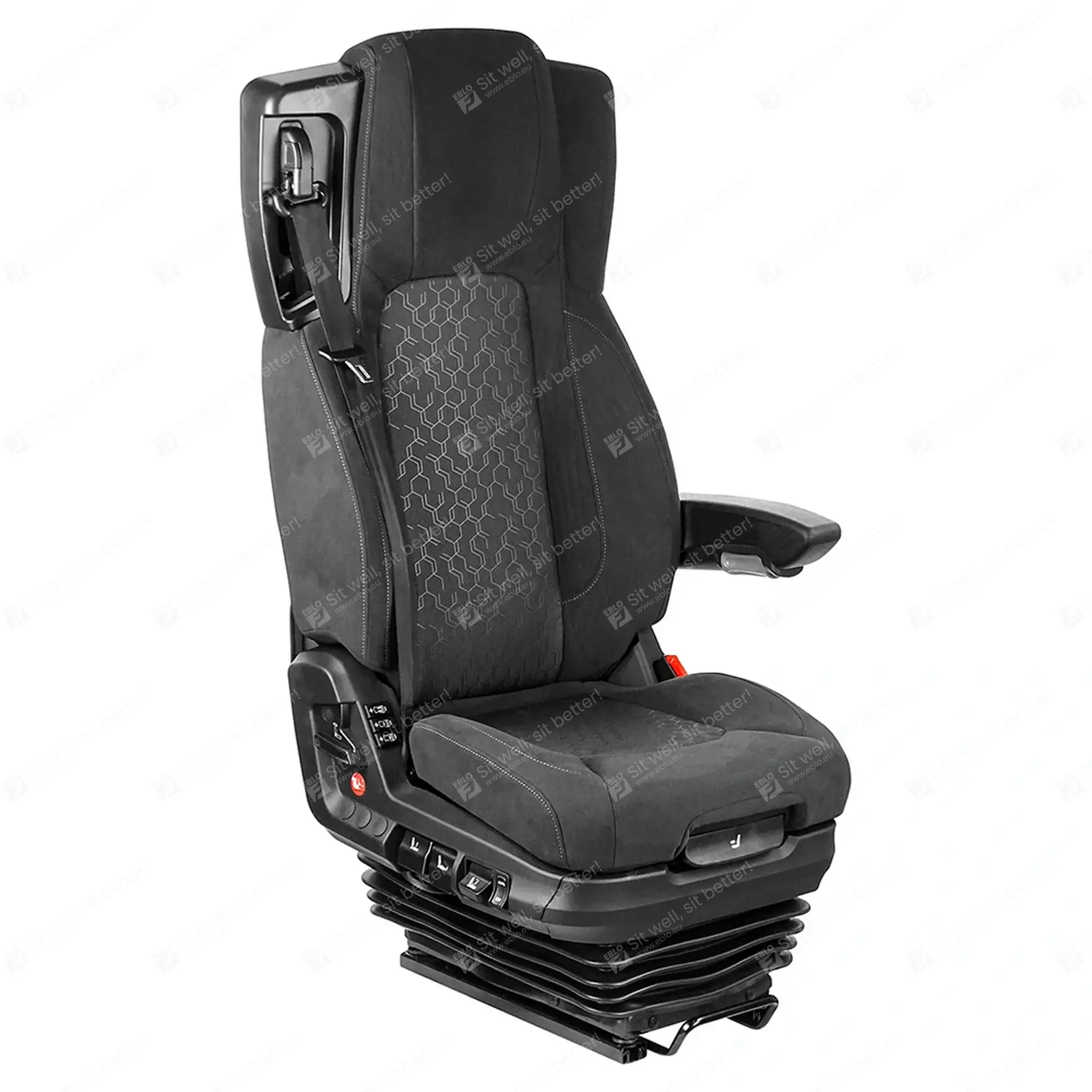 Naast deze eigenschappen, is deze vrachtwagenstoel ook nog voorzien van een 3-punts veiligheidsgordel die ook in hoogte-verstelbaar is, (3 posities), pneumatisch verstelbare zijwangen, rugverstelling (30°/40° voorwaarts en achterwaarts) en zitdiepteverstelling 50 mm.