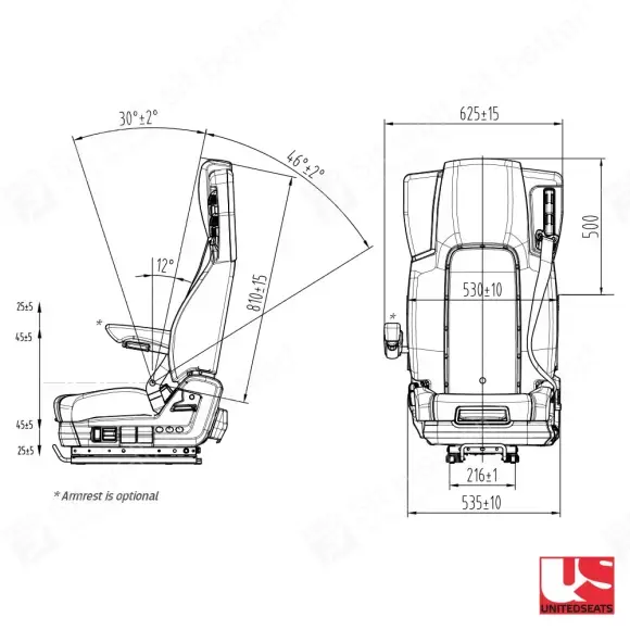 De UnitedSeats Voyager C70 Comfort vrachtwagenstoel kan naar wens worden uitgebreid met verschillende opties, zoals stoelverwarming, armleuningen en andere bekledingen. U kunt bijvoorbeeld de luxe armleuning US.700090 (links) of US.720090 (rechts) toevoegen aan deze stoel. Deze armleuningen zijn in neiging verstelbaar.