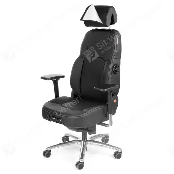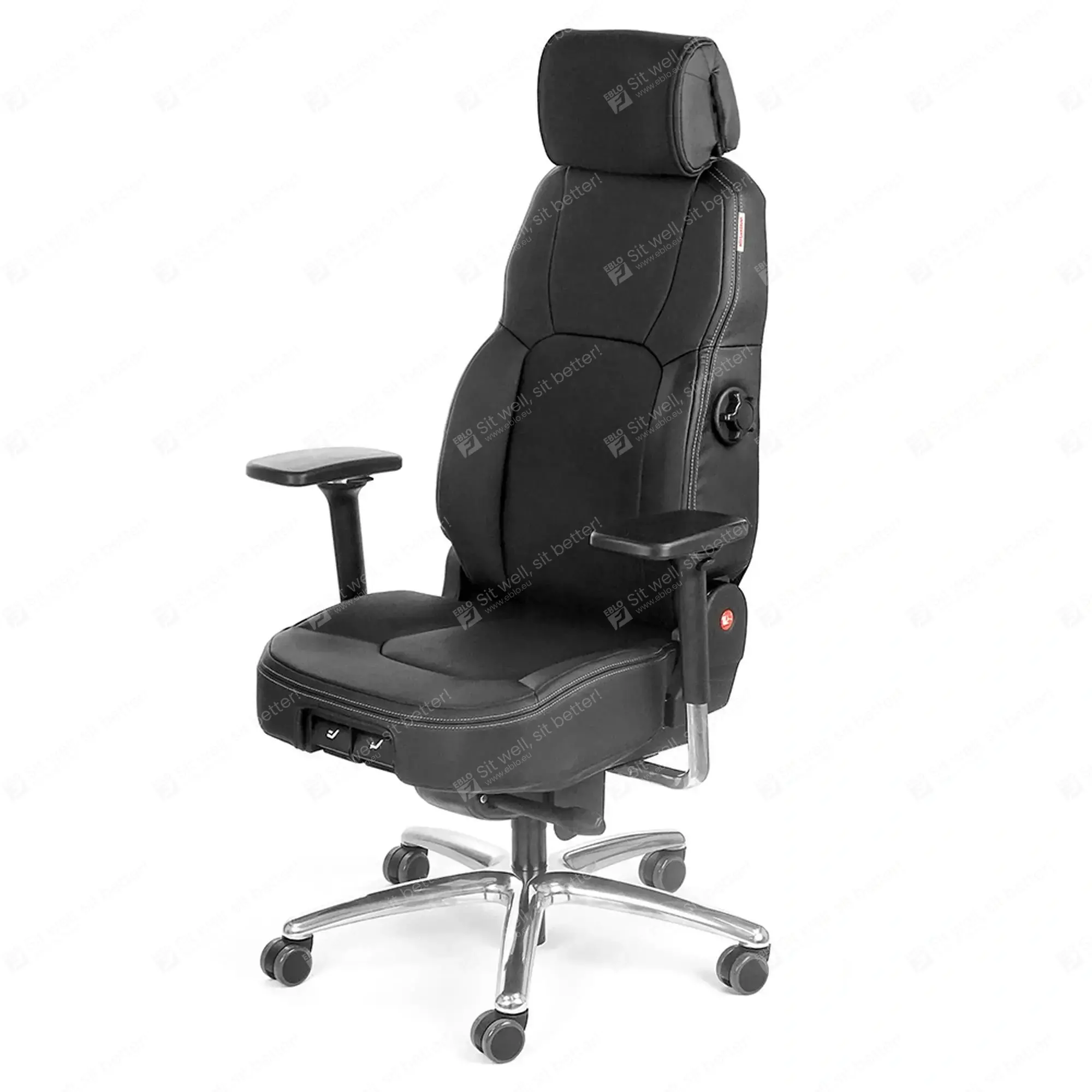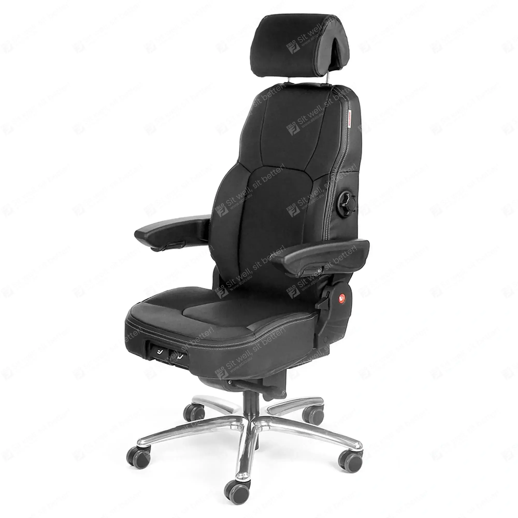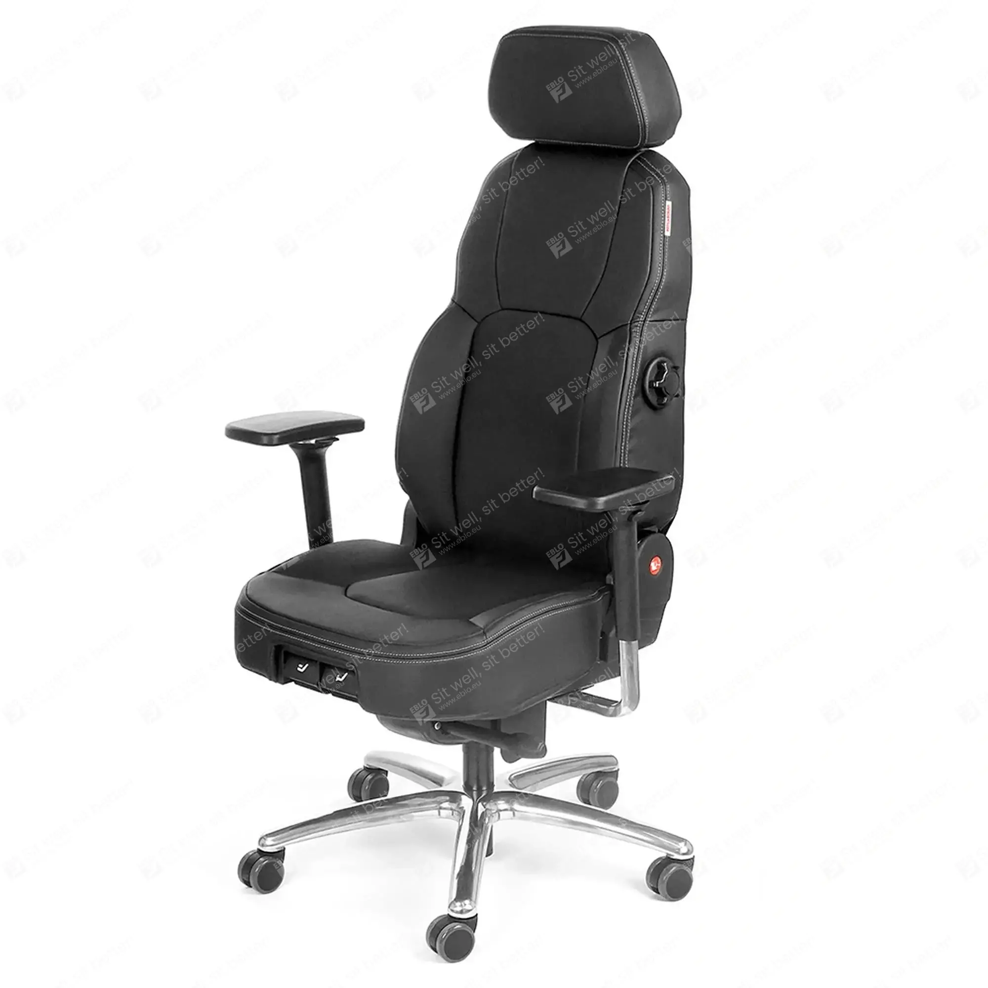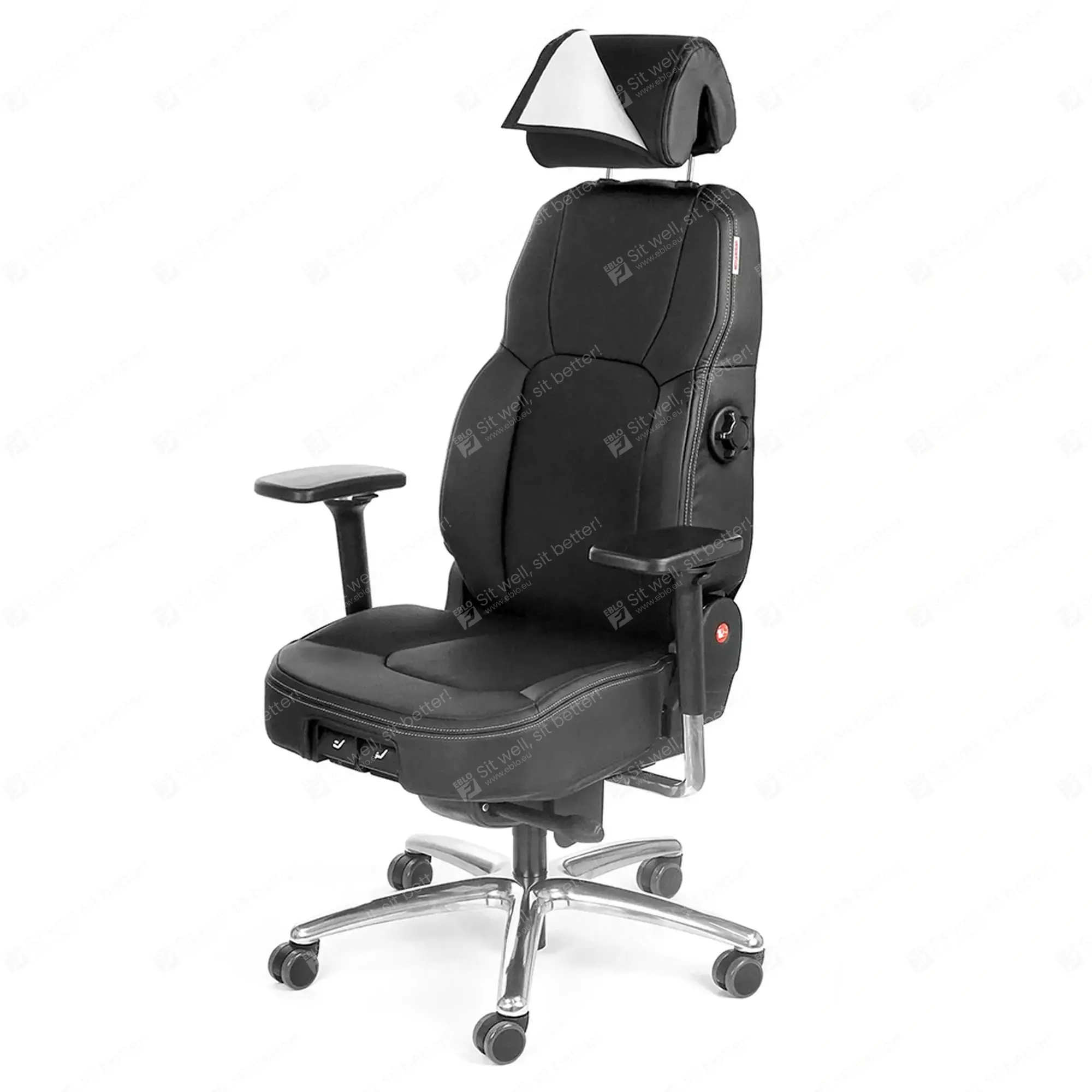Verstelbare armleuningen, rugleuning en hoofdsteun.